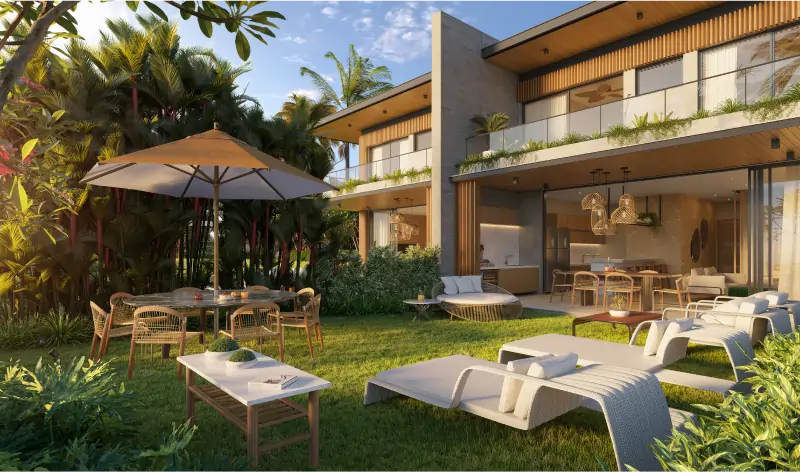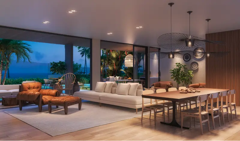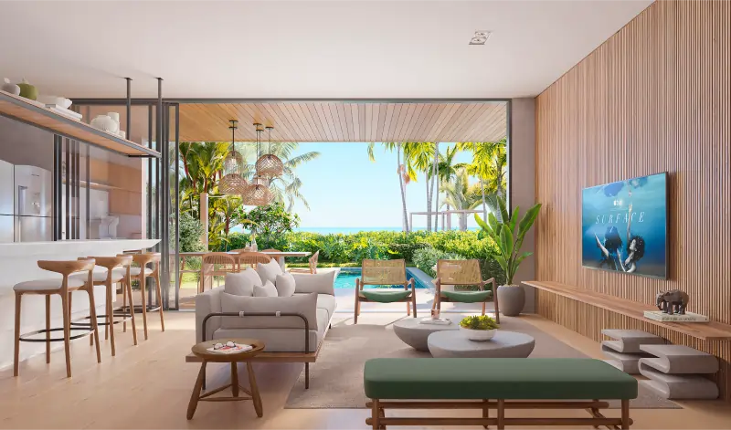 Esses imóveis estão vendendo como pão quente, graças ao conceito de casa de praia com vista mar, pé na areia e jardim privativo com piscina.